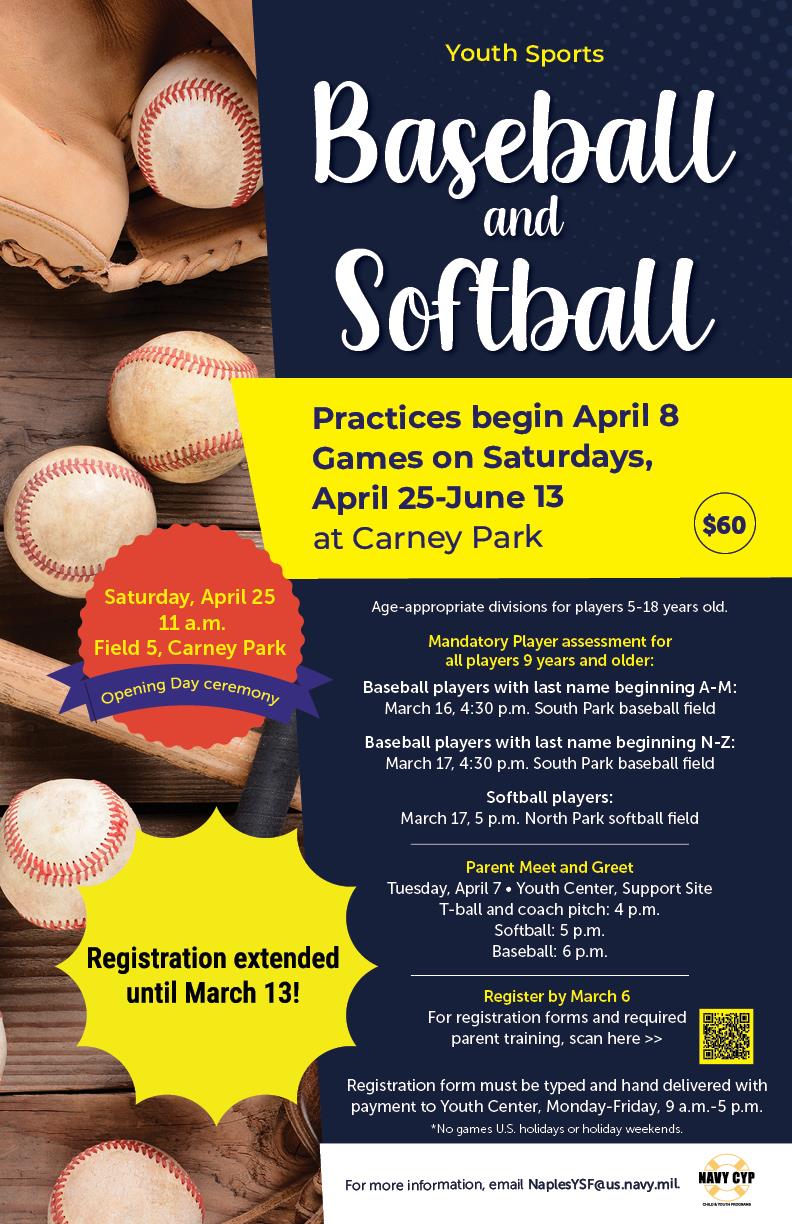 For more information or to volunteer to coach, email NaplesYSF@us.navy.mil or call 081-811-4722 / DSN 629-4722.
