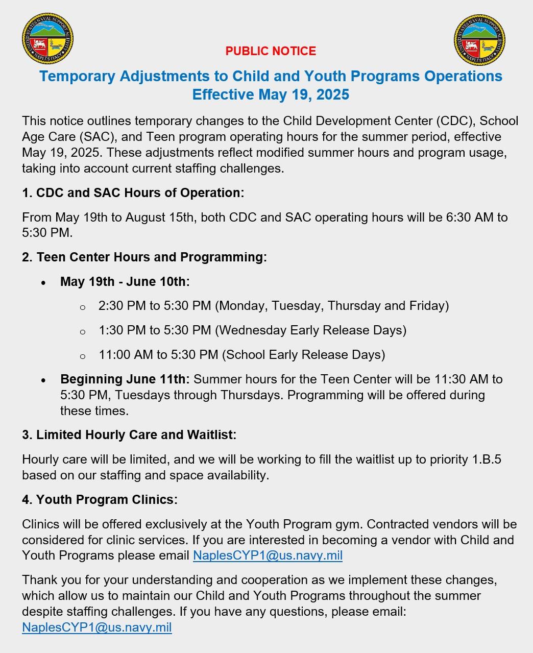 Universal Pre-Kindergarten and School Age Care options availabe at NSA Naples.
